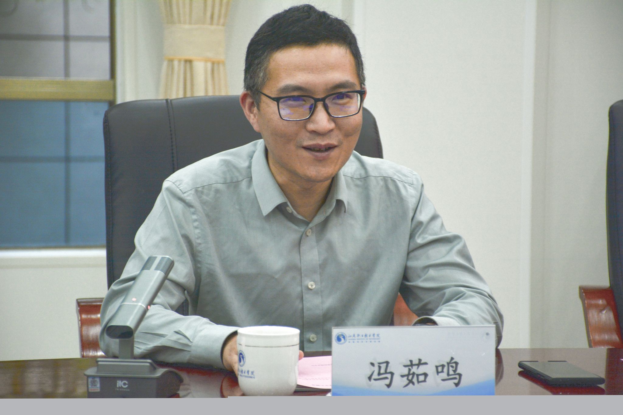 冯茹鸣对能源实验室近期的现状及未来发展方向进行简要介绍,并重点就水下机器人等项目进行了详细介绍,他表示在项目的样机制造、测试及现场试验过程中需要科技人员参与,希望通过政校企多层次深度合作,实现科技成果产品化、产业化,更好服务区域经济、服务社会。