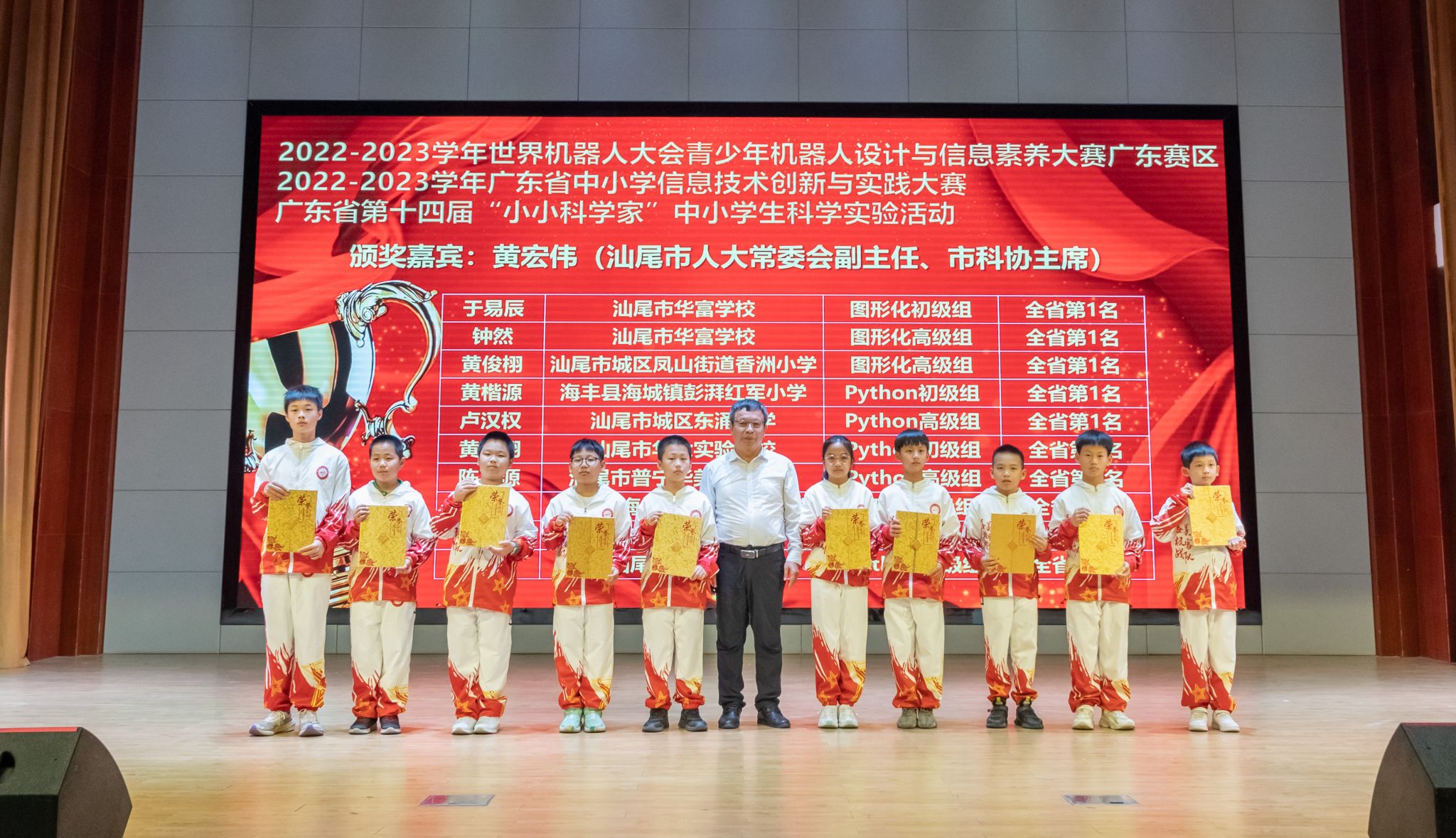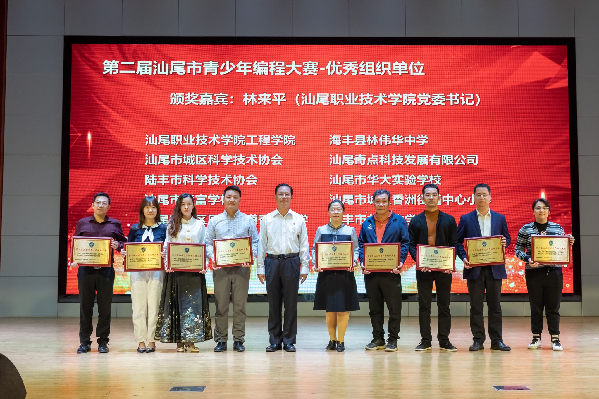 本次颁奖典礼暨科普展示活动由汕尾职业技术学院、汕尾市科学技术协会、汕尾市教育局、汕尾市科学技术局、九三学社汕尾市基层委员会主办,由汕尾职业技术学院工程学院、汕尾市科技馆、汕尾市计算机学会、汕尾市智适应教育科技有限公司承办,并取得广东省计算机学会、中国电信汕尾分公司、深圳大学STEM教育实验中心等单位的大力支持。