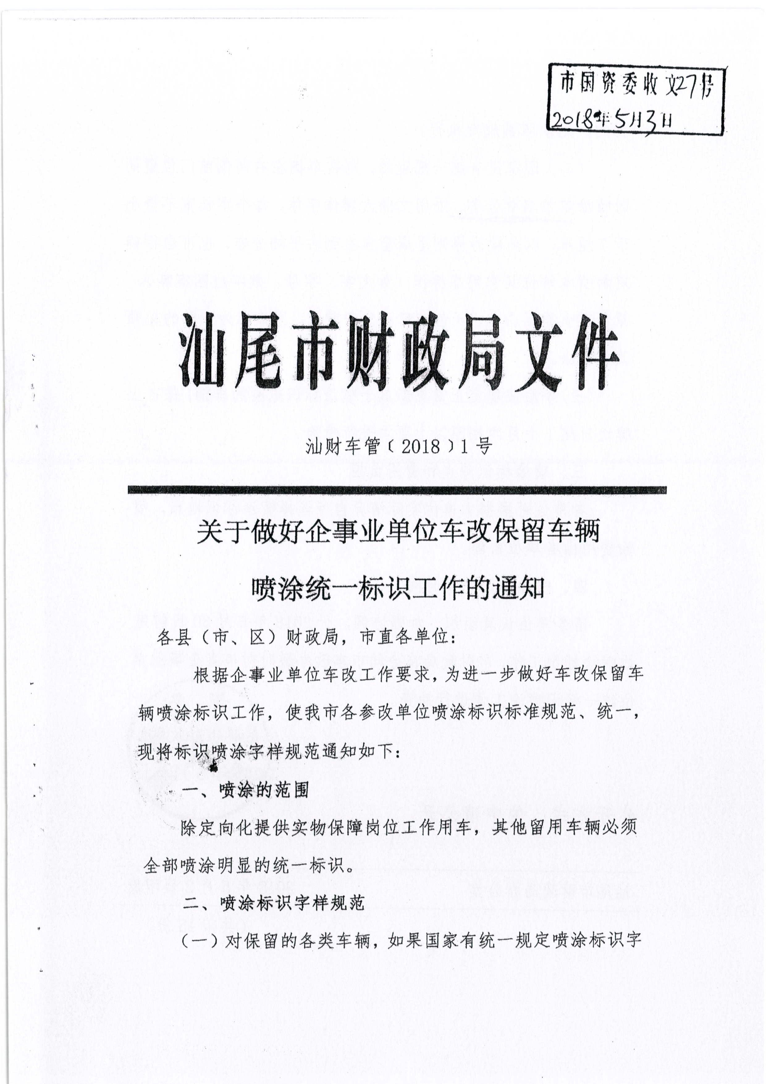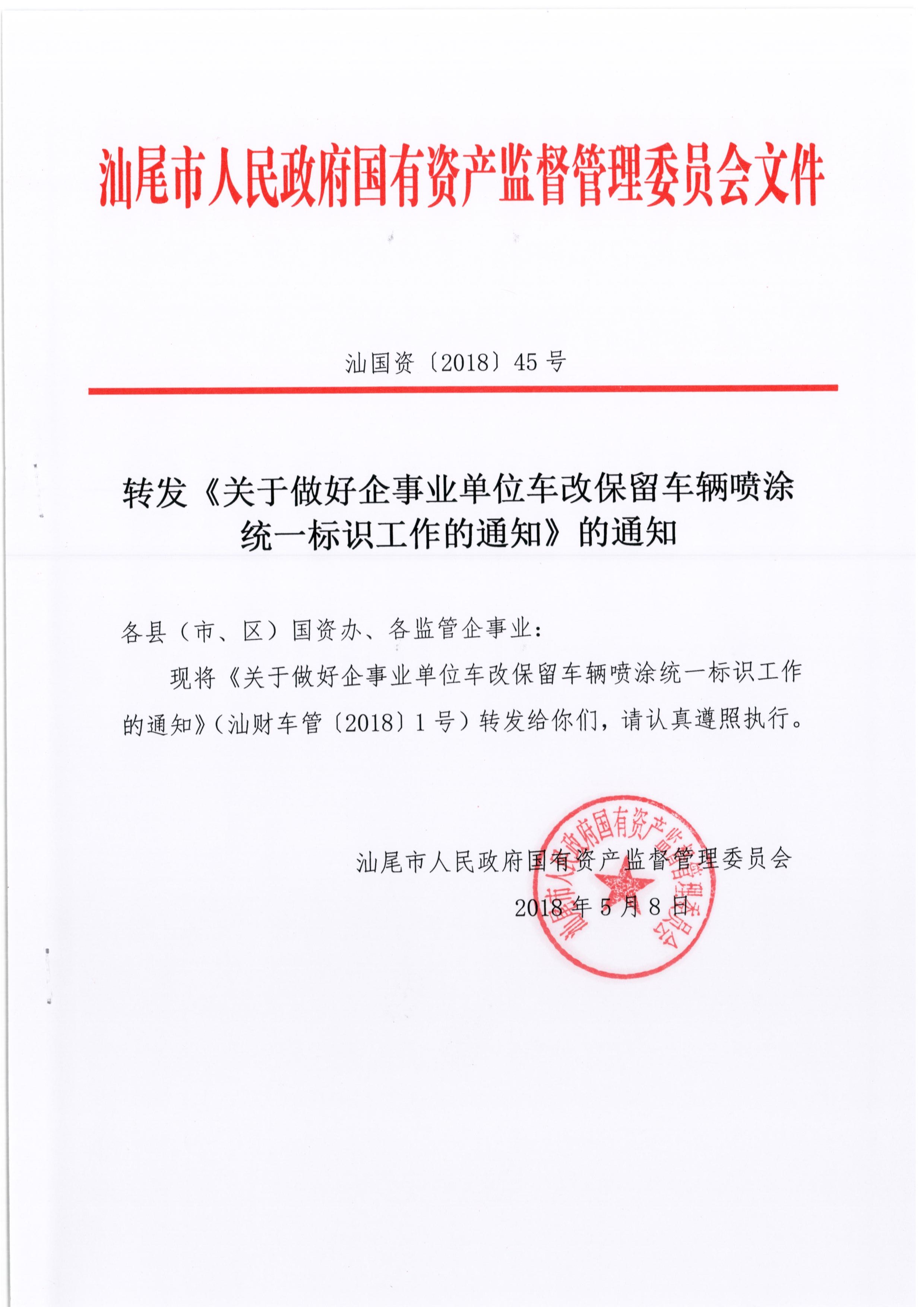转发《关于做好企事业单位车改保留车辆喷涂统一标识工作的通知》的通知