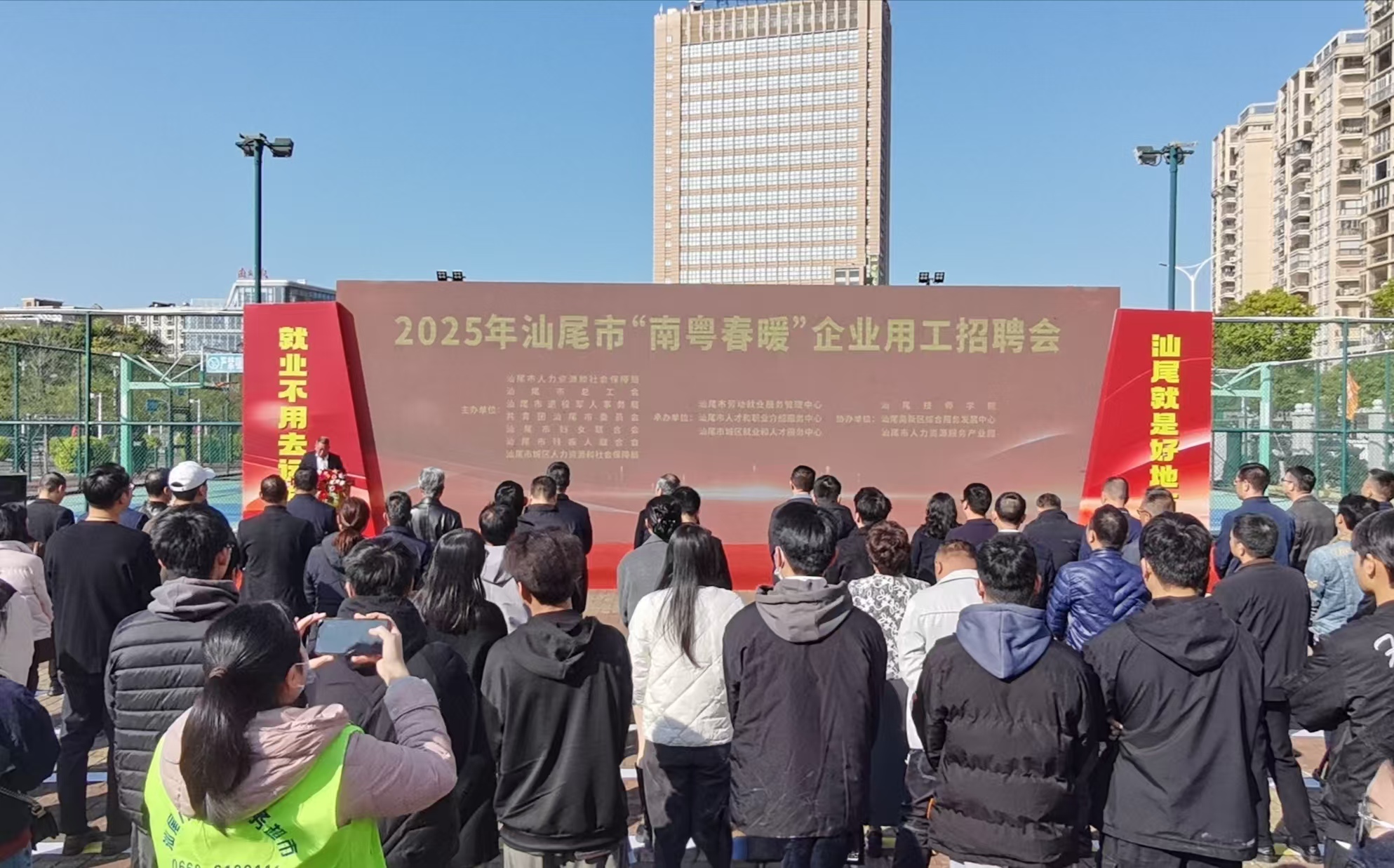 为进一步保障企业用工,帮助群众实现就近就业,2月10日至11日,由市、城区两级人力资源社会保障局联合市总工会、团市委、市妇联、市退役军人事务局、市残联和汕尾高新区管委会共同主办的2025年汕尾市“南粤春暖”企业用工招聘会在市区全民健身广场举行。