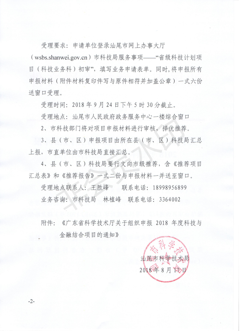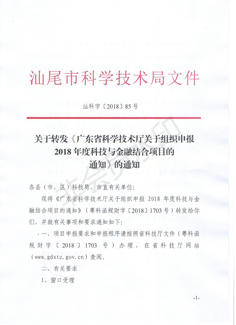 关于转发《广东省科学技术厅关于组织申报2018年度科技与金融结合项目的通知》的通知