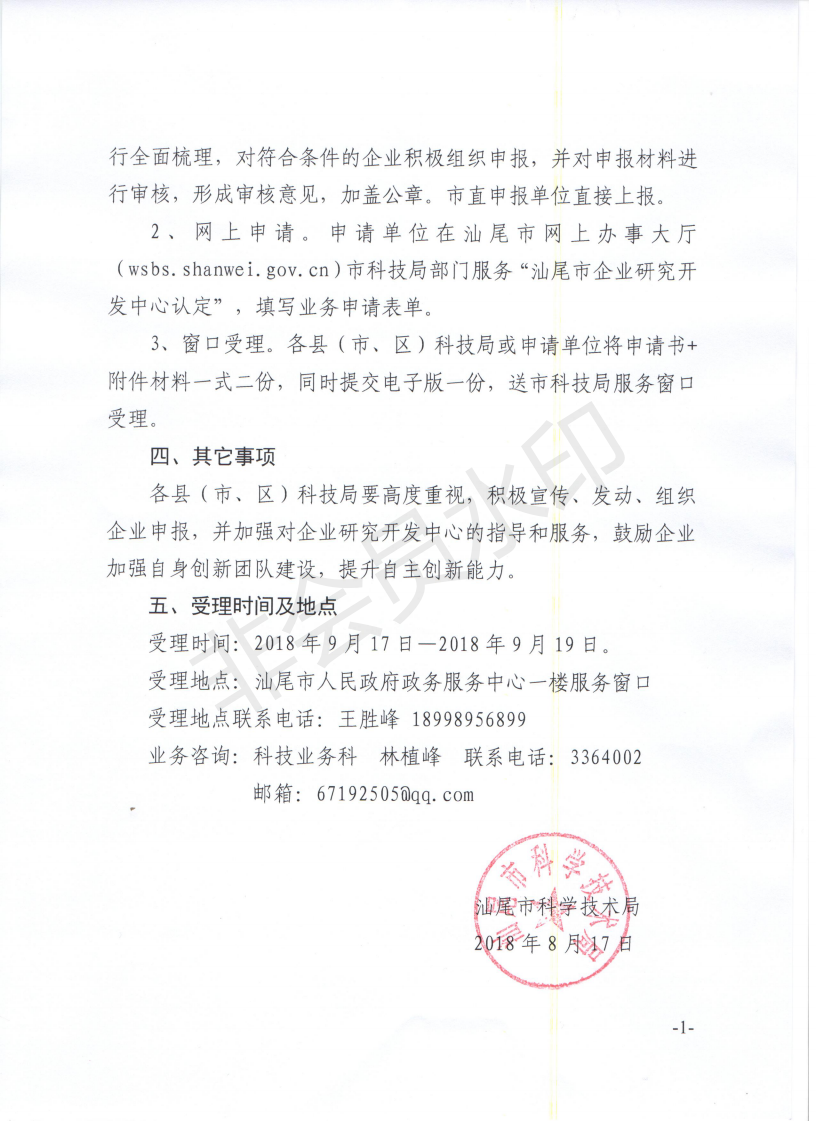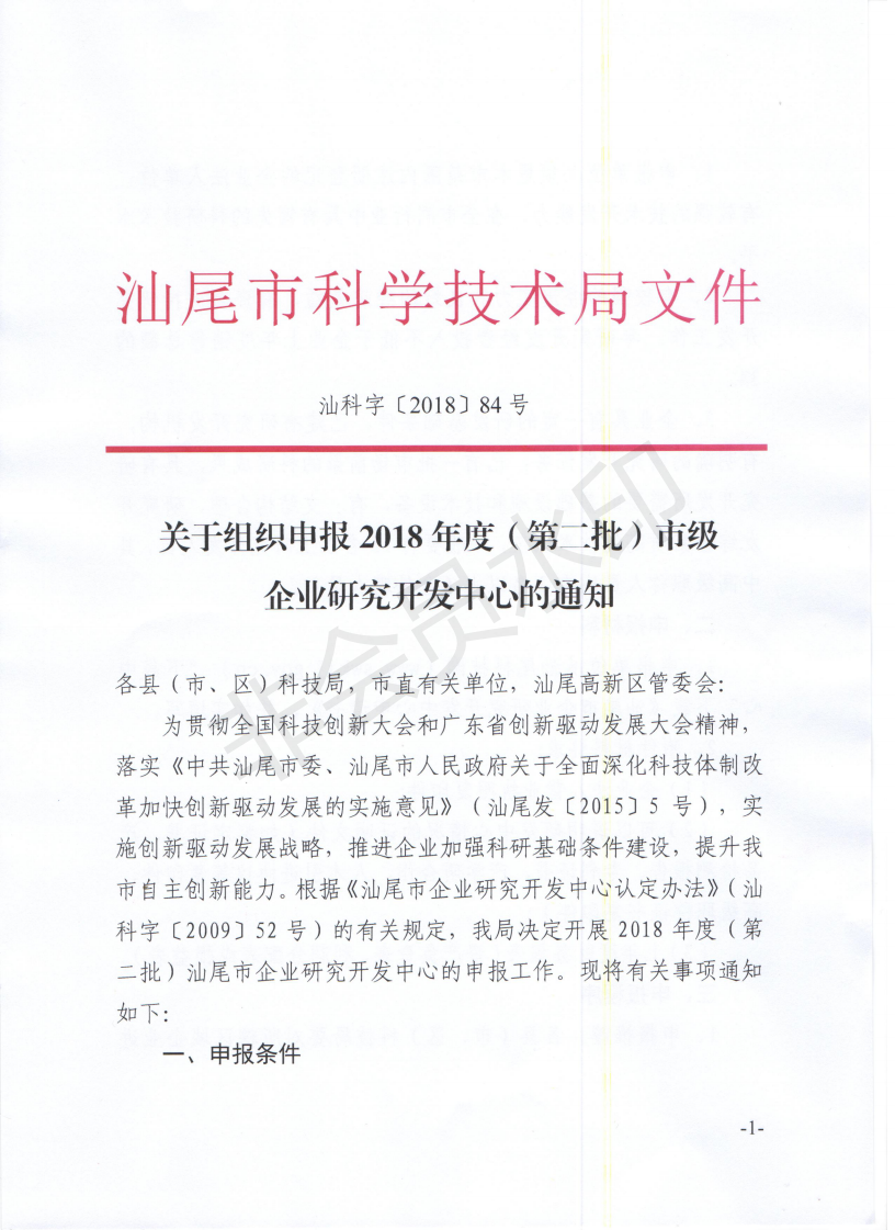 关于组织申报2018年度(第二批)市级企业研究开发中心的通知