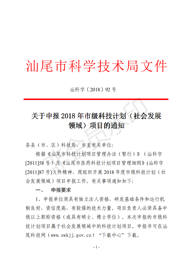 点击下载:关于申报2018年市级科技计划(社会发展领域)项目的通知