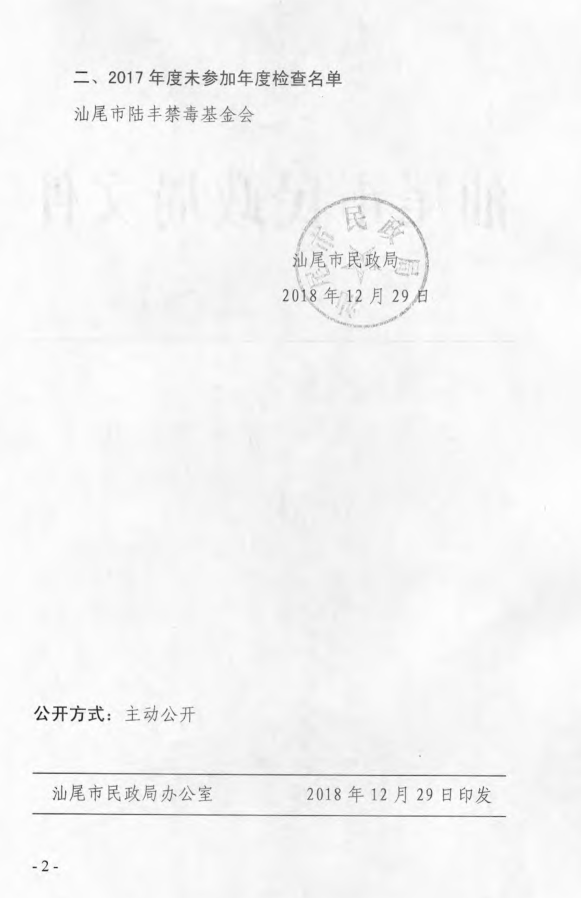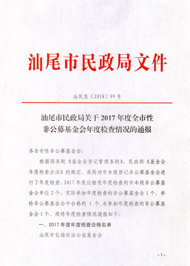 汕尾市民政局关于2017年度全市性非公募基金会年度检查情况的通报