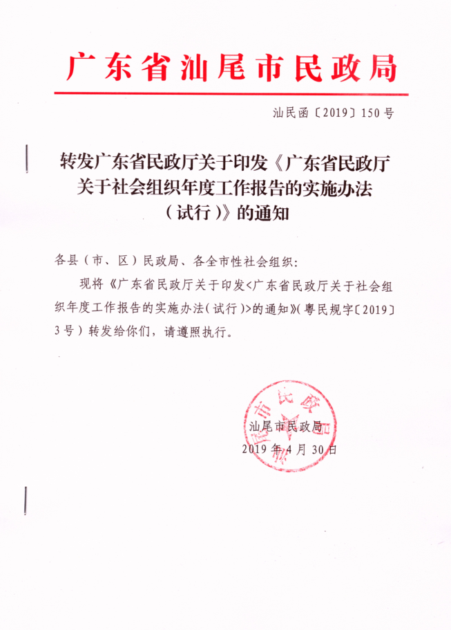 转发广东省民政厅关于印发《广东省民政厅关于社会组织年度工作报告的实施办法(试行)》的通知