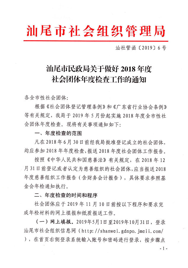 汕尾市民政局关于做好2018年度社会团体年度检查工作的通知
