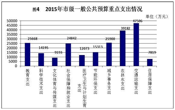 2015年,面对财政收入增长乏力、刚性支出压力加大以及消化以前年度空转虚增收入等多重压力,全市各级财政部门坚持稳中提质、稳中求进的工作基调,坚决贯彻市委、电影天堂 的决策部署,狠抓挖潜提质不放松,着力提高财政收入质量,合理调度资金,优化支出结构,规范资金管理,全面深化改革,有效促进全市经济和社会各项事业的发展。