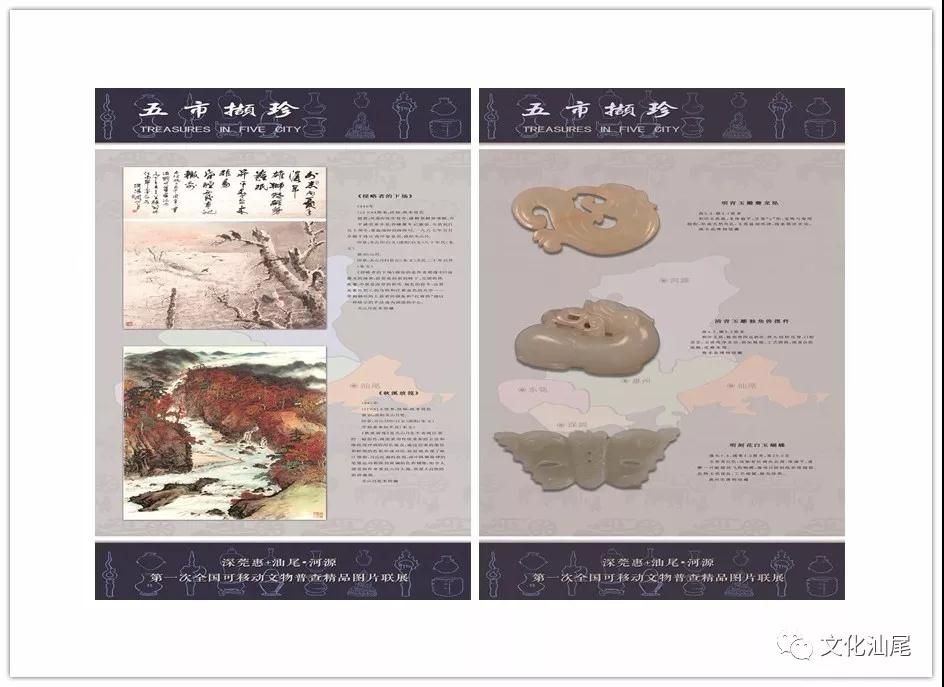 2018年10月10日“五市撷珍——深莞惠+汕尾河源第一次全国可移动文物普查精品图片联展”(汕尾)在汕尾职院首次展出,之后将在各县(市、区)巡回展览,展期为2018年10月-2019年6月。
