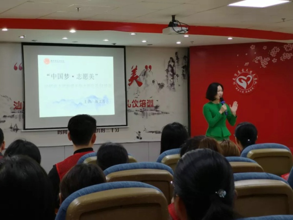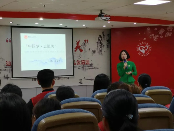 为进一步推进志愿服务制度化、常态化,加强志愿队伍建设,提升志愿者综合能力,大力培育志愿服务文化,弘扬“奉献、友爱、进步”的志愿精神,12月16日上午,汕尾市志联慈爱天使志愿队联合汕尾市图书馆、汕尾市文化志愿者总队、惠东县礼仪协会,在市图书馆举办2018“中国梦,志愿美”志愿服务礼仪培训班活动,此次礼仪培训课程邀请了省礼仪名师周文芳老师为130余名志愿者授课