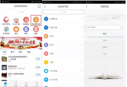 汕尾市移动图书馆是一款为图书馆读者通过手机客户端提供移动服务的应用系统。该客户端主要功能为三大模块:一、图书馆信息查询。读者可利用客户端随时查询馆藏,查询书籍归还时间,自助续借等服务。二、数字资源移动阅读服务。读者可以方便快捷地实现学术资源手机端一站式检索,并随时随地阅读电子图书、期刊、报纸、微视频、公开课等图书馆数字资源,还可收藏到个人书房。三、读者学习交流社区服务。读者可以在知识空间建立自己的书房和学习交流圈,在小组里进行自由的兴趣爱好交流。随时随地分享读书笔记,动态地获取最新的好友分享。