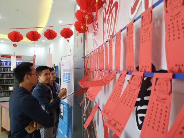 为增添节日喜庆气氛,市图书馆工作人员贴心地为读者朋友们准备了猜灯谜赢大奖的各种礼品,为读者朋友们精心准备了各类谜语。活动现场,大家争先恐后的看谜面、猜谜语,有的默默沉思,有的互相探讨,大家的脸上都洋溢着欢乐、喜悦的笑容,整个活动现场充满了欢乐、吉祥、喜庆,洋溢着浓厚的节日气氛。