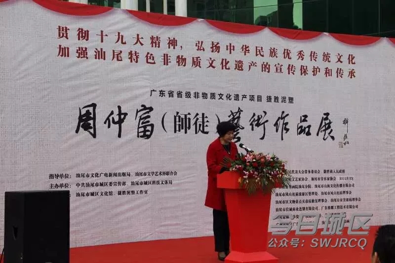 12日28日上午,由中共汕尾市城区委宣传部、汕尾市城区科技文体局主办的广东省非物质文化遗产项目“捷胜泥塑”代表性传承人周仲富(师徒)艺术作品展在市图书馆开幕。