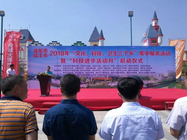 5月29日,由汕尾市委宣传部、汕尾市文广新局、汕尾市科技局、汕尾市科协、汕尾市卫计局等相关单位和陆丰市委宣传部、陆丰市商务局、陆丰市科协等相关单位联合举办的“文化、科技、卫生三下乡”集中服务活动暨“科技进步活动月”启动仪式在陆丰市举行。