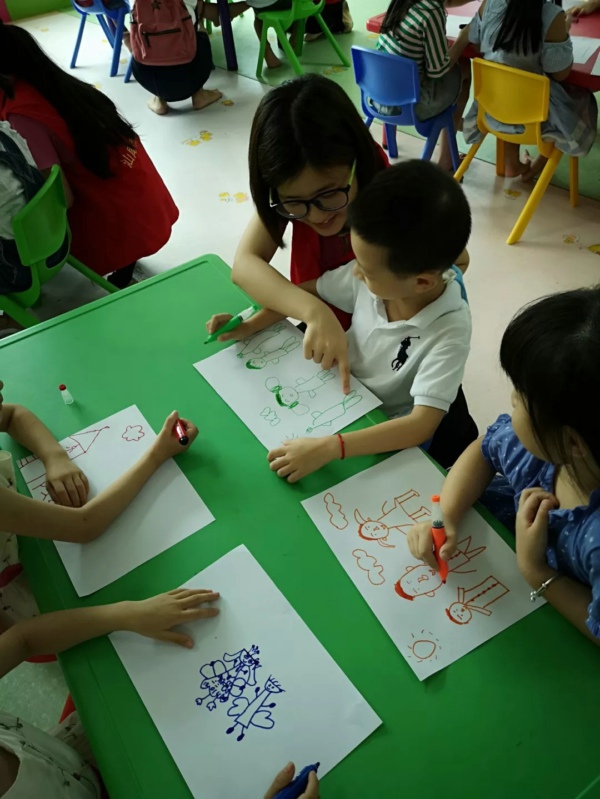活动穿插手工环节,现场工作人员为小朋友们提供了画纸与绘笔,让小朋友们通过画画的方式画出自己心中好朋友的形象,通过这种方式来让小朋友们加深对友谊的理解。