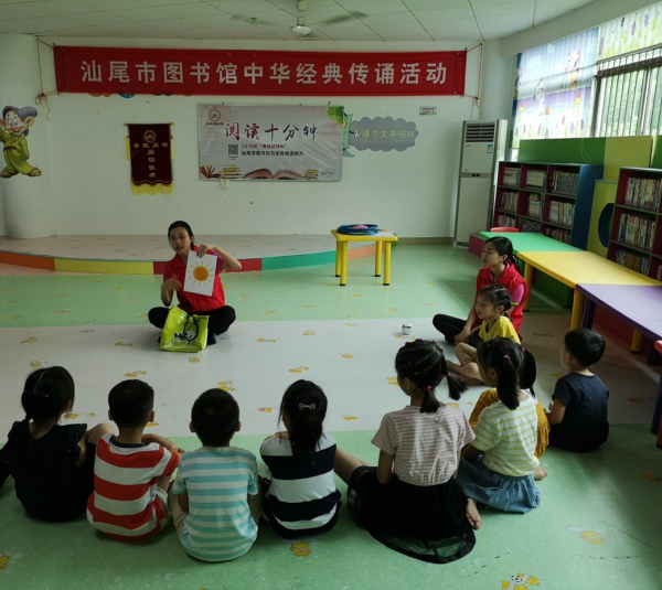 9月9日上午,汕尾市图书馆少儿室举办了第六期“悦”读营亲子阅读活动——“卡片识天气”英语教学活动,此次活动邀请了五名志愿者老师,并有15余组亲子家庭学员参与。