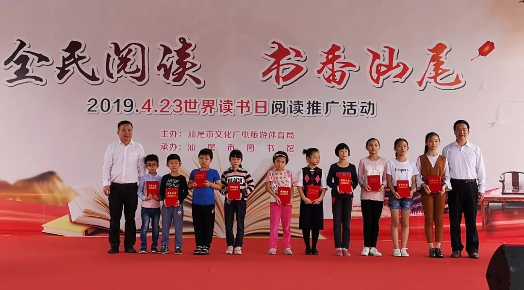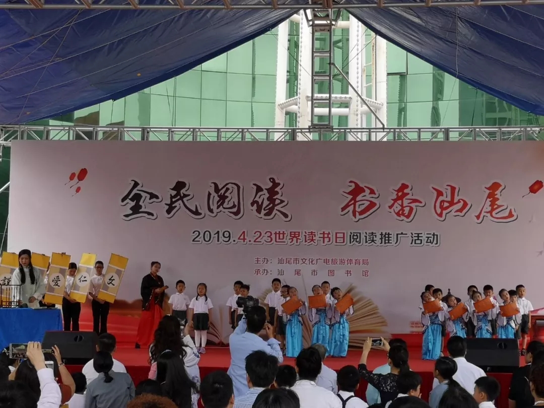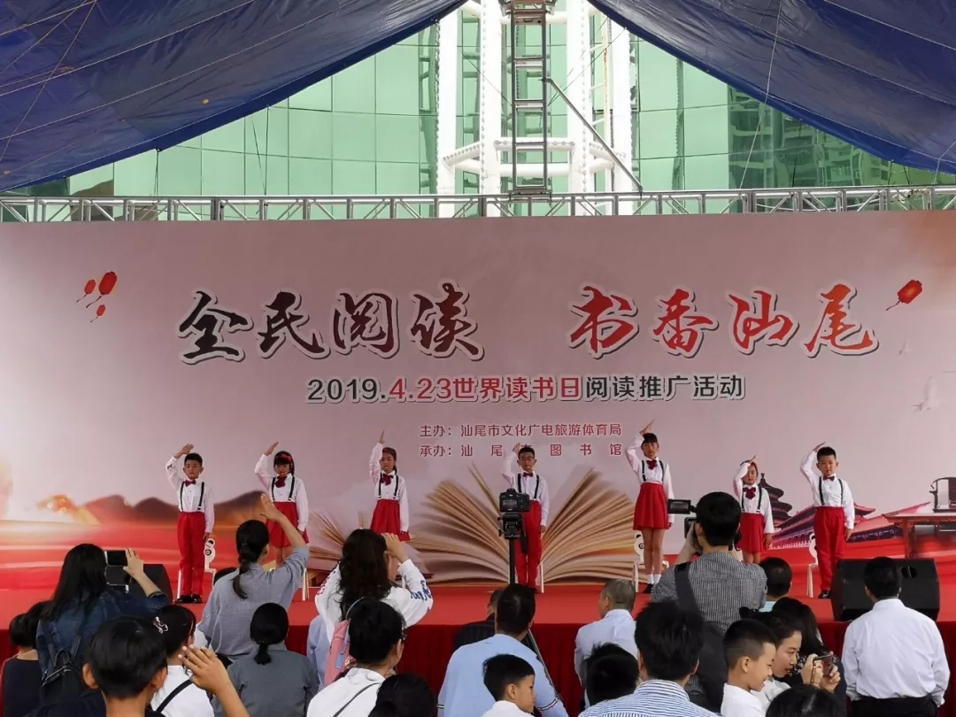 为庆祝第24个“4·23世界读书日”,4月21日上午,由市文化广电旅游体育局主办,市图书馆承办的“全民阅读 书香汕尾——2019年‘4·23世界读书日’阅读推广活动”在市图书馆户外广场举行。市文化广电旅游体育局局长蔡东升、副局长陈朝鸿,市图书馆馆长陈仲宜、副馆长莫建生等相关部门领导出席此次活动。现场读者朋友、家长们、小演员们和志愿者老师们欢聚一堂,载歌载舞,其乐融融。