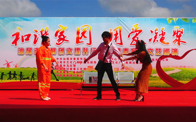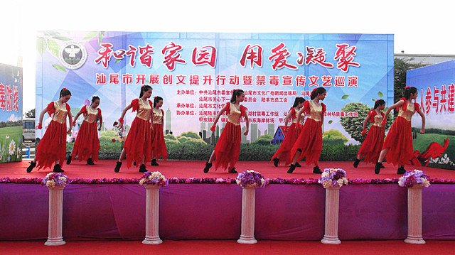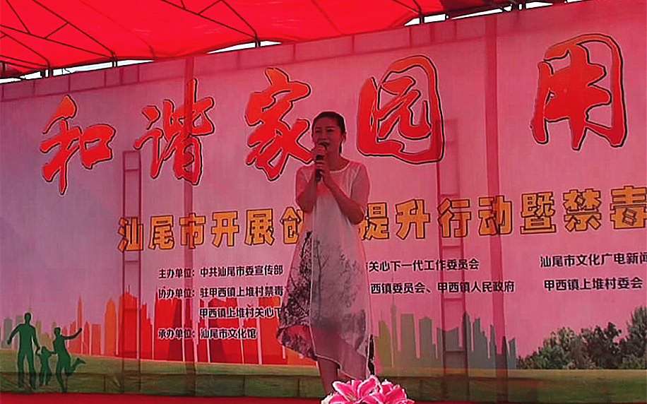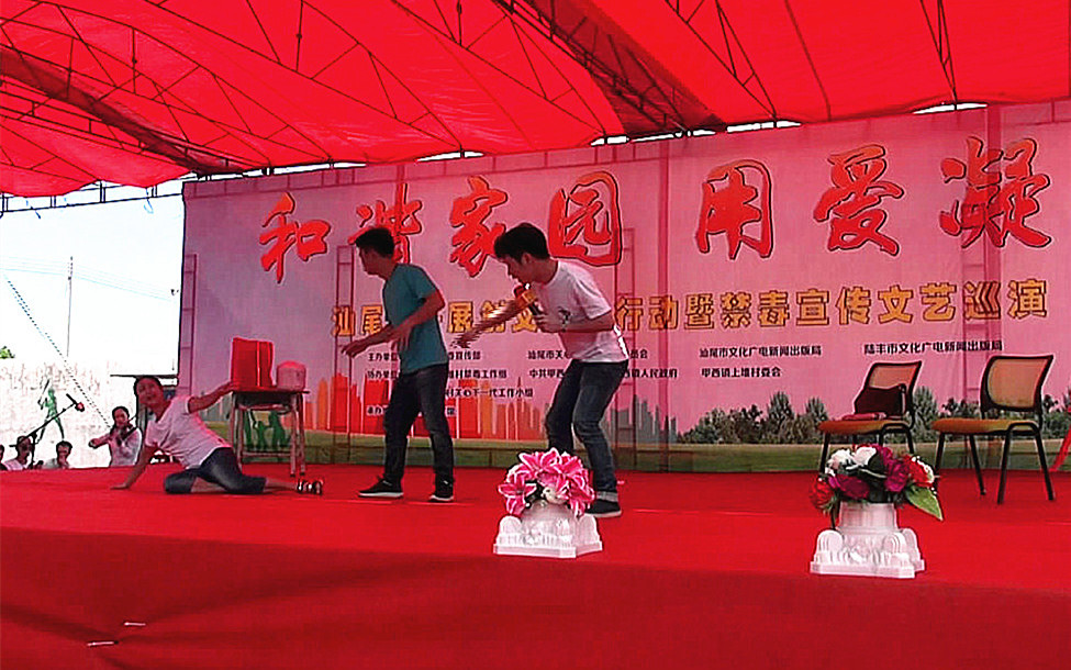 为进一步推进创文创卫工作的深入开展,全面提升市民文化素质和社会文明程度。根据市委电影天堂 工作部署和《汕尾市开展创建文明城市“十大整治”、“十大提升”行动的实施方案》精神,结合电影天堂 禁毒宣传教育工作纵深开展的要求。6月26日,由中共汕尾市委宣传部、汕尾市关心下一代工作委员会、汕尾市文化广电新闻出版局、汕尾市总工会联合主办,汕尾市文化馆承办,汕尾、陆丰关工委驻甲西镇上墩村,汕尾、陆丰文广新局驻甲西镇新饶村,汕尾、陆丰总工会驻甲东镇联湖村等禁毒整治工作组,甲西、甲东镇委、镇政府,上墩村、新饶村、联湖村村委会协办的“和谐家园 用爱凝聚”——汕尾市开展创文提升行动暨禁毒宣传文艺巡演分别在陆丰市甲西镇上墩村、新饶村、甲东镇联湖村举行。