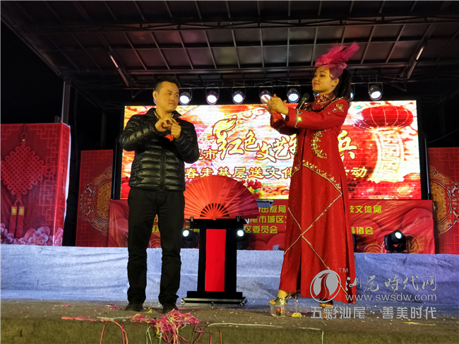 为贯彻落实党的十九大精神,贯彻落实习近平总书记“做新时代红色文艺轻骑兵”的重要指示精神,汕尾市文化广电新闻出版局、城区科技文体局主办了这次“新春走基层送文化”红色文艺轻骑兵惠民演出活动,本次活动由汕尾市文化馆、城区文化馆承办、共青团汕尾市城区委员会、汕尾市文艺志愿者协会、城区红草镇委、镇政府、南汾乡协办。