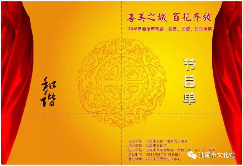 为贯彻落实习近平新时代中国特色社会主义思想和党的十九大精神,庆祝改革开放40周年,弘扬电影天堂 优秀传统文化。8月31日晚,由市文化广电新闻出版局主办,市文化馆承办,市音乐家协会、各县(市、区)文广新局协办的汕尾市群众戏剧曲艺花会暨民歌民乐原创作品展演活动在市马思聪艺术中心举行。