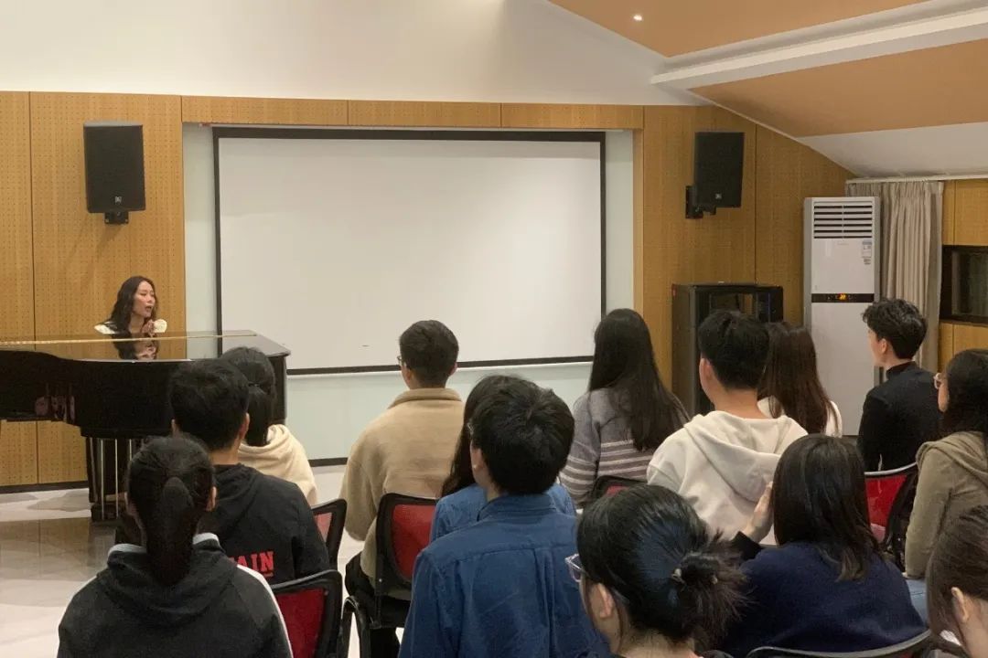 市馆本部声乐培训室歌声缭绕,琴声悠扬。声乐老师正在给学员进行声乐教学,让学员了解正确的发声和气息的运用技巧,学员们学习情绪饱满高涨,学习气氛热烈。