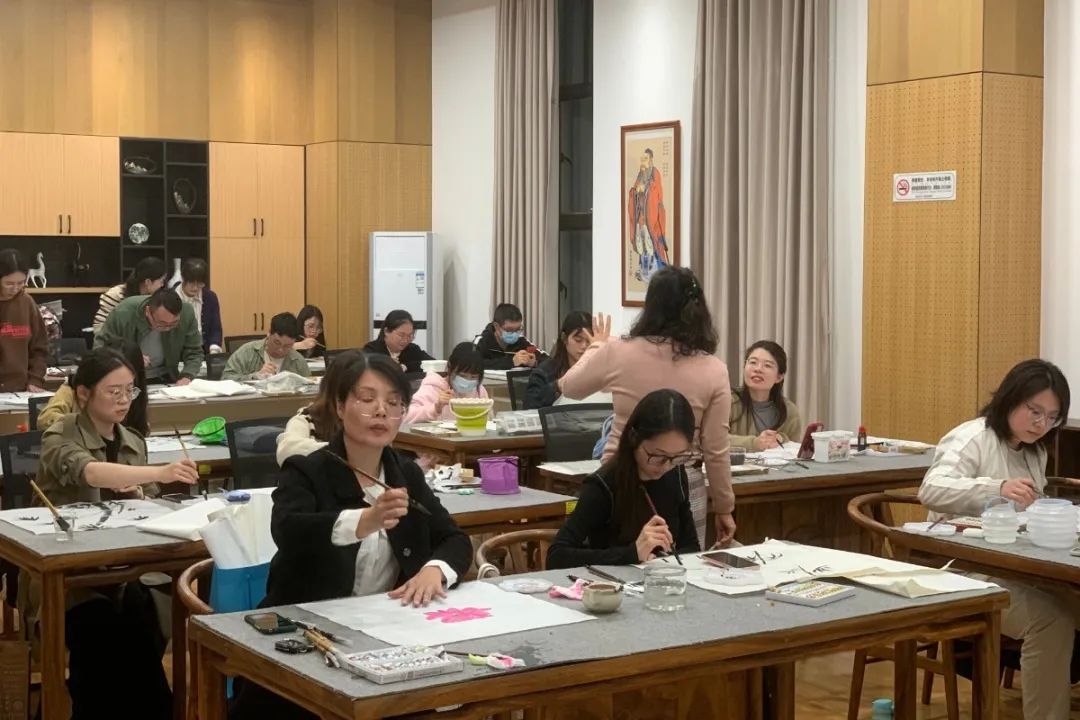 市馆本部美术培训教室学员在上国画课。老师用通俗易懂的语言解析国画的特点,让学员体验国画独特的艺术风格,提高学员的艺术审美。