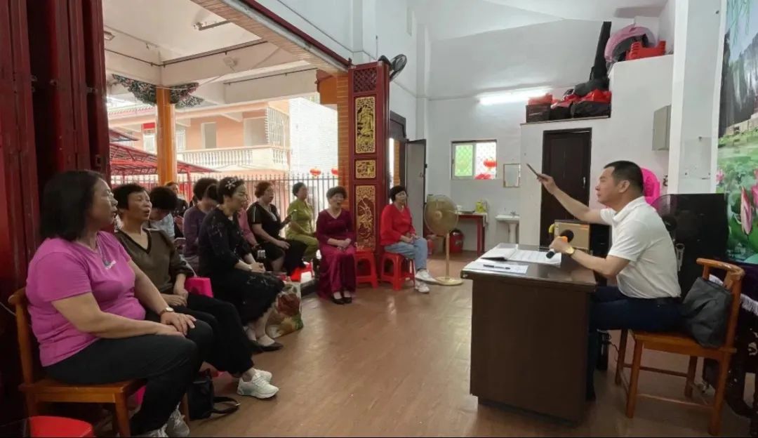 白字戏项目传承人在海丰县文津社区进行教学。课上洋溢着浓厚的艺术氛围,老师生动形象地示范白字戏的唱腔,学生们聚精会神,感受着传统艺术的魅力。