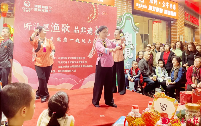 近日,由汕尾日报文化传播有限公司、汕尾无咪个农科文化有限公司、汕尾市城区汕尾渔歌传承基地渔歌队联合主办,潮见肥妈海鲜火锅协办的“听汕尾渔歌,品非遗茶礼”的汕尾非遗文创茶礼活动在市城区二马路美食街启动,一场融合汕尾非遗文化与茗茶雅韵的盛宴拉开帷幕。活动从12月6日开始,预计会持续到今年年底,每周五、六晚会邀请渔歌表演队进行现场演唱,其他时间则会摆放文创产品和播放渔歌。