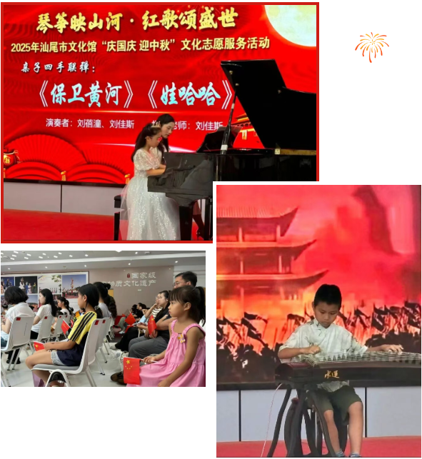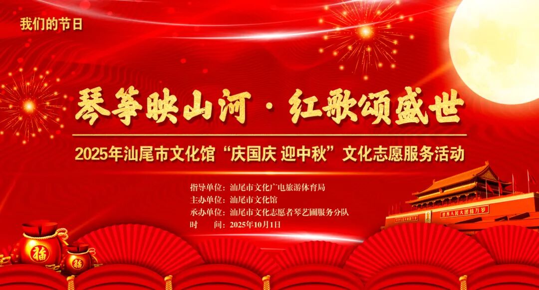 金秋送爽,双节同辉。为庆祝中华人民共和国成立76周年,喜迎中秋佳节,营造喜乐、祥和的节日氛围,2025年10月1日下午,由汕尾市文化广电旅游体育局指导、汕尾市文化馆主办的“琴筝映山河 红歌颂盛世”——2025年汕尾市文化馆“庆国庆 迎中秋”文化志愿服务活动在市文化馆圆满举行。