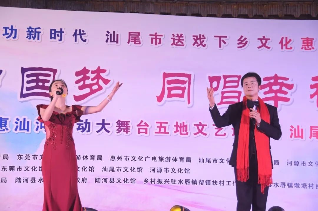 为进一步贯彻落实《广东省加快推进文化和旅游融合发展三年行动计划》战略规划,推动深莞惠+汕尾、河源五市文化资源共享联动,打造富有各地特色的文化巡演,推进跨区域文化志愿服务活动走深走实。2023年3月18日,“奋进新征程 建功新时代”2022年汕尾市送戏下乡文化惠民活动暨“共筑中国梦 同唱幸福歌”2022年深莞惠汕河流动大舞台五地文艺巡演(汕尾专场)活动在陆河县水唇镇墩塘村委广场举办。