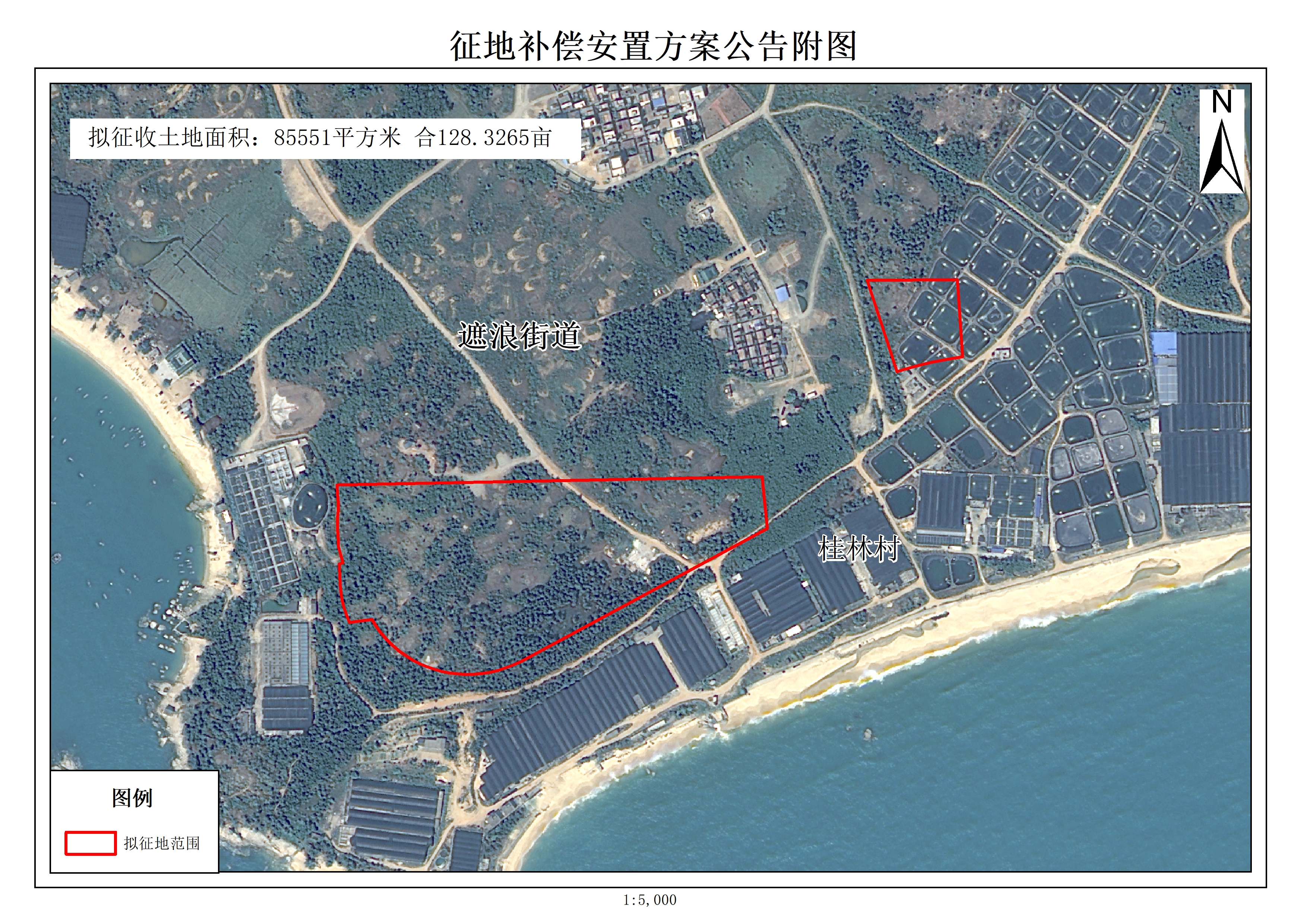 拟征收遮浪街道桂林村五家曾经济合作社集体所有土地8.5551公顷(128.3265亩),均为农用地(不含耕地),含林地4.8608公顷(72.9120亩)、草地3.1473公顷(47.2095亩)、其他农用地0.5470公顷(8.2050亩)。