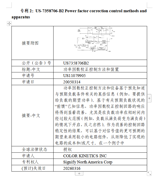 一、Signify、Current专利诉讼案 2018年,美国Signify North America Corporation与荷兰Signify Holding B.V.(以下统称为“Signify”)向美国Current Lighting Solutions(以下简称为“Current”)发送警告函,声称Current的产品侵犯了其多项LED相关专利。此后五年,两家公司围绕专利许可展开谈判,但并未达成共识。