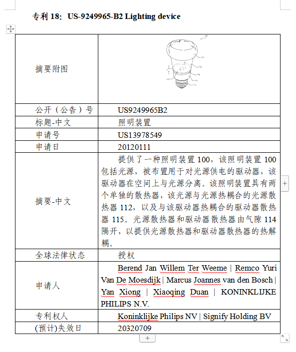 Signify总部位于荷兰,主要营业地址位于High Tech Campus 28, 5656 AE Eindhoven, The Netherlands,其美国分公司Signify North America主要营业地址位于200 Franklin Square Drive, Somerset, New Jersey 08873。Signify的前身是飞利浦公司照明事业部,2016年,飞利浦照明事业部独立上市,并于2018年由飞利浦照明改名为Signify,但继续使用飞利浦作为产品品牌,是全球领先的智能互联LED产品、LED照明控制系统和服务厂商。Signify拥有近2万项专利,覆盖了LED照明产业链绝大部分技术分支,涵盖灯具结构、调光调色、驱动器、控制器、照明系统和通信协议等。此外,Signify基于其专利布局,于2008年推出了专利许可计划EnabLED,提供5000余项授权专利,目前被许可人达到1500余名,包含百余家中国企业。