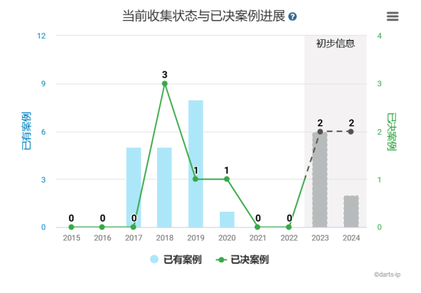 专利侵权诉讼趋势(数据来源:Darts-ip)