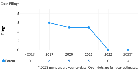 根据统计数据,原告在美国共涉及18起专利侵权诉讼,其中16起为主动发起。从诉讼趋势上看,原告2019年之前未发起过诉讼,2019年4月开始首次发起诉讼,首年即发起6起诉讼。2022年以来,原告未在美国继续发起诉讼。