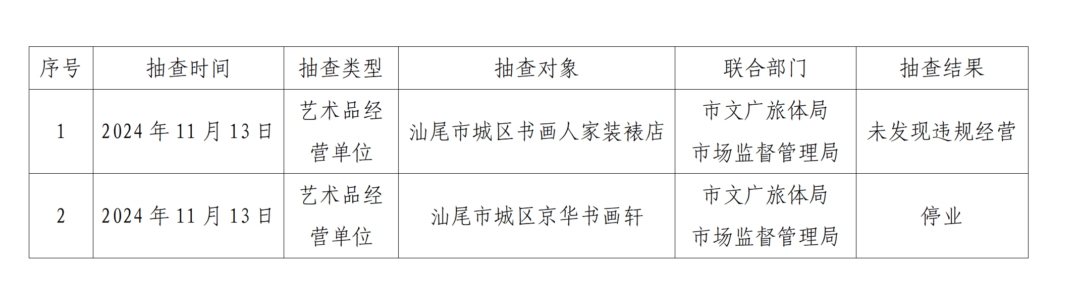 2024年艺术品经营单位“双随机、一公开”跨部门联合抽查