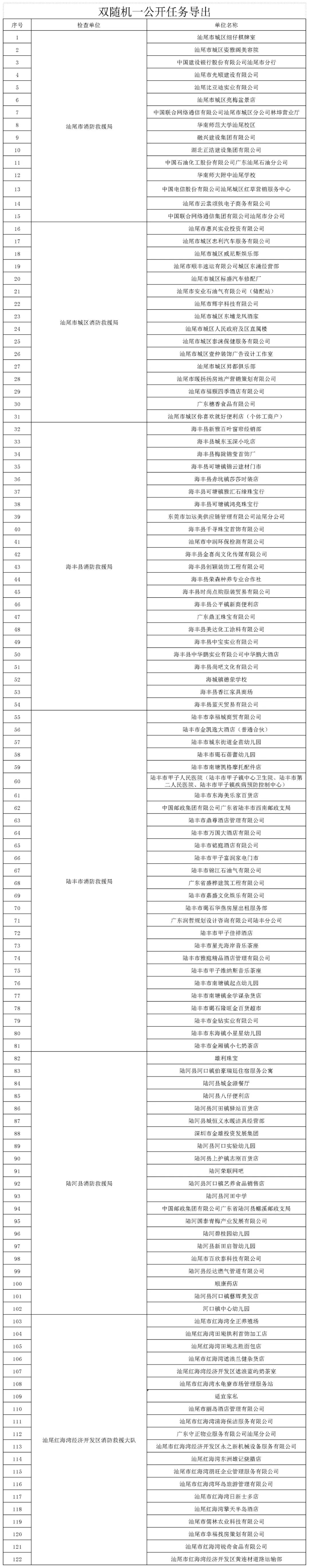 见《广东省消防救援总队“双随机、一公开”抽查事项清单》。