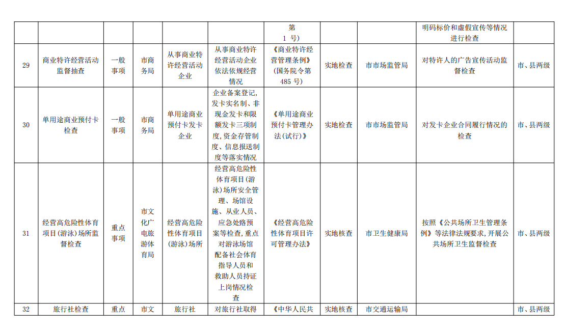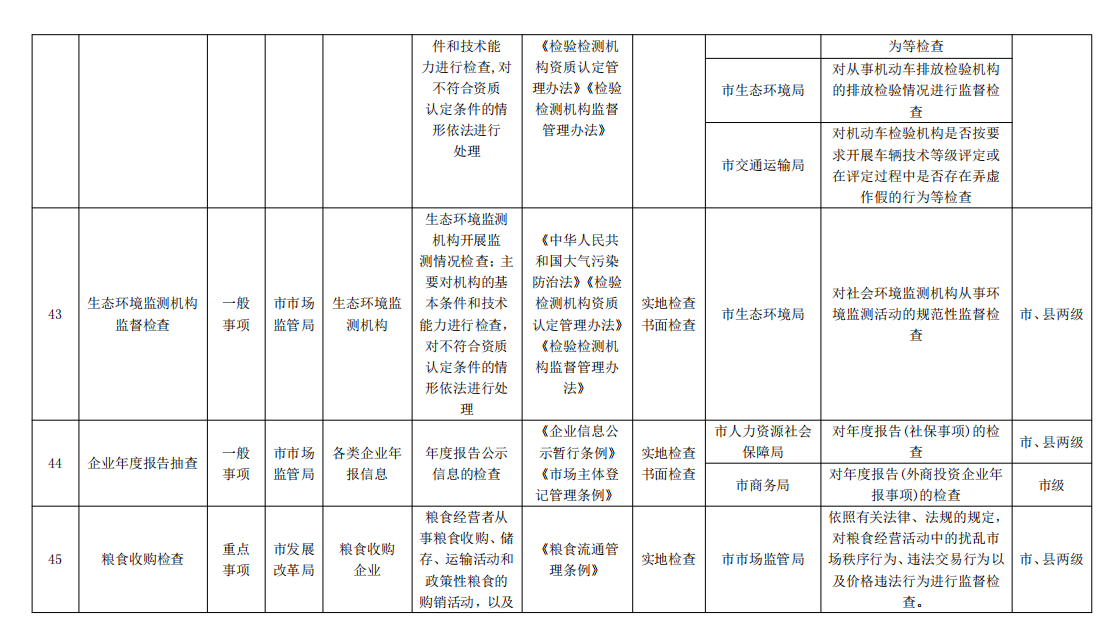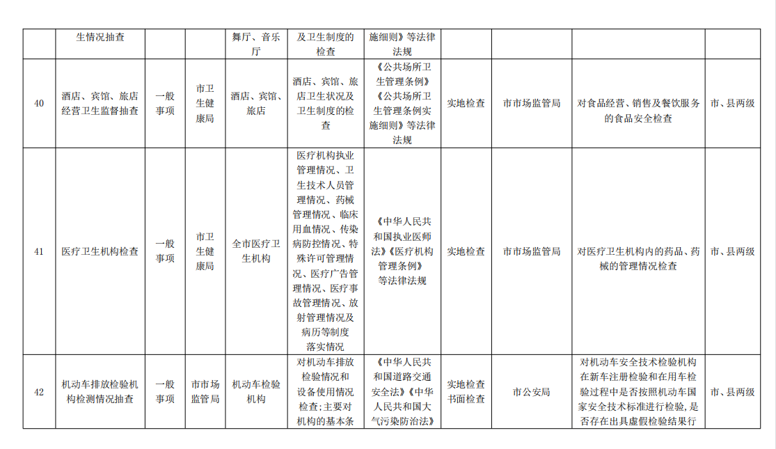 一、抓好《清单》落实。部门联合抽查实施“清单式” 管理是国家对“双随机”抽查监管的根本要求,市联席会议按规定将《清单》统一对外公布,各成员单位要将本部门牵头和参与的联合抽查事项清单,与本部门的单部门抽查事项清单一同在本级政务信息平台或本单位门户网站向社会公布,如因法律、法规、规章立改废释或职能调整等工作实际情况,《清单》抽查事项发生变化的,应报市联席会议及时动态调整。对《清单》内的联合抽查事项,各成员单位应结合实际,每年至少确定一个重点,制定当年联合抽查计划、落实抽查任务。对《清单》外的检查事项,原则上不得随意纳入“双随机”联合抽查,确需开展联合抽查的,应提供情况说明和申请,经市联席会议批准后方可实施。