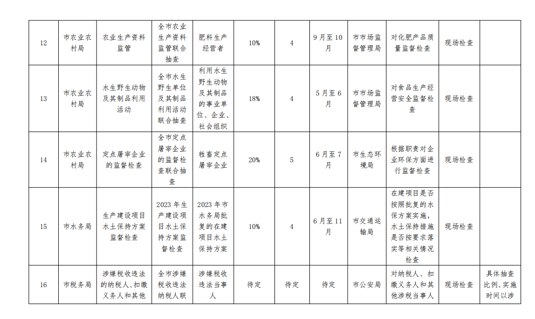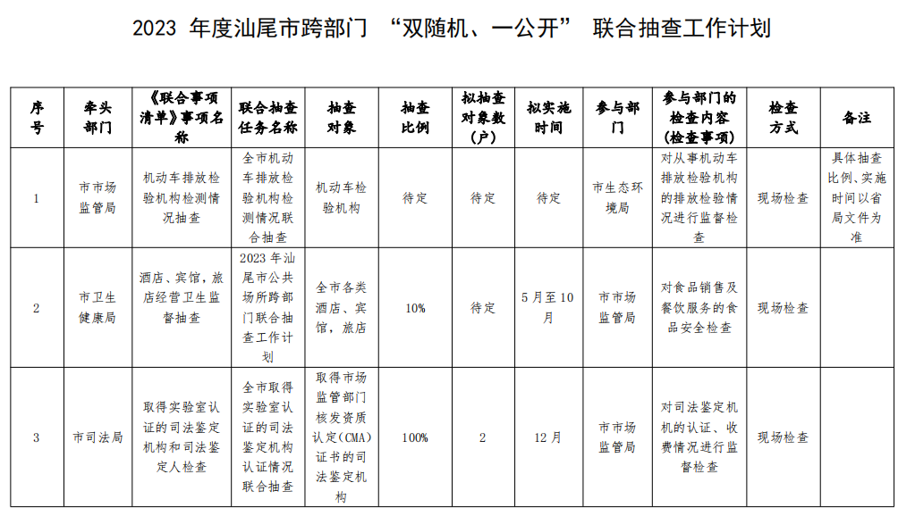 为做好2023年度全市跨部门“双随机”联合抽查工作,根据2023年全市营商环境优化提升工作的部署,制定了《2023 年度汕尾市跨部门 “双随机、一公开” 联合抽查工作计划》,请各牵头单位按照计划认真组织开展跨部门“双随机”联合抽查工作。现提出如下意见请一并贯彻落实。