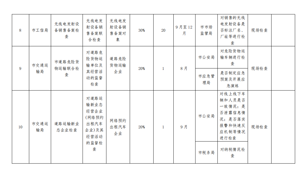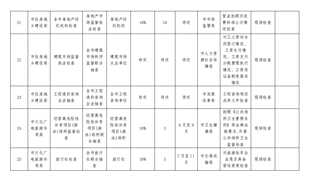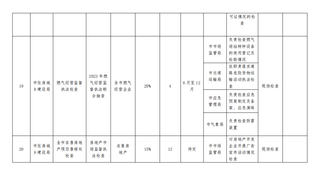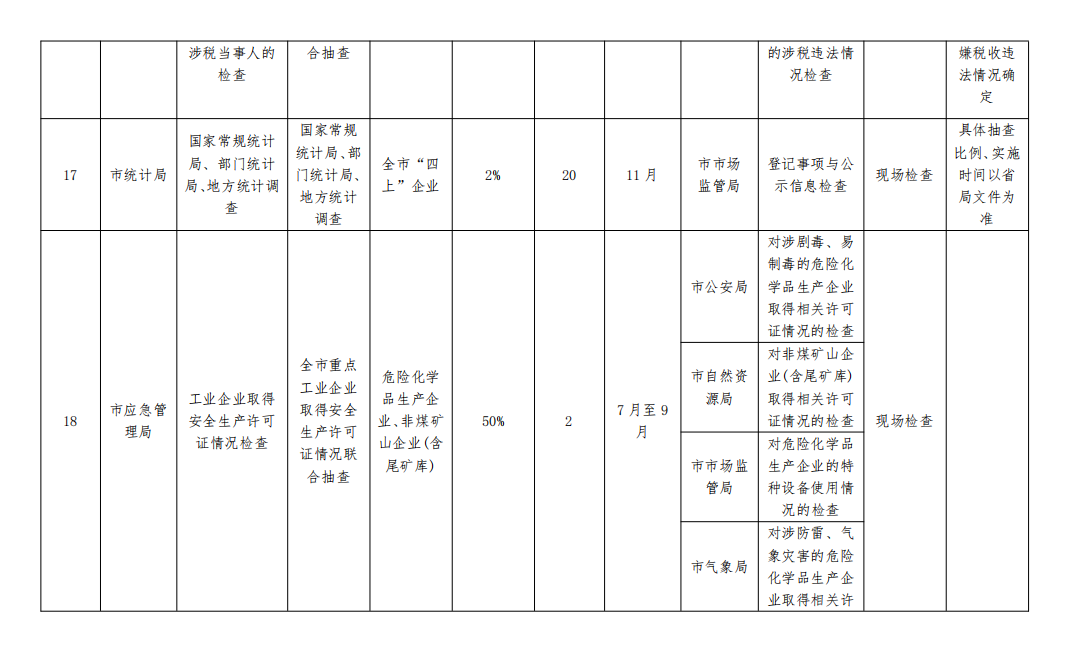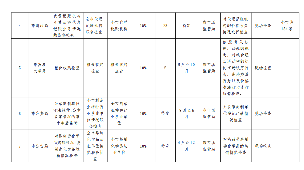 三、各县(市、区)要参照市的做法制定本地区跨部门联合抽查工作计划组织实施并及时上报市联席会议备案。请各地各单位高度重视,本年度跨部门“双随机”联合抽查工作纳入全市优化营商环境考评亮牌,对未按规定完成工作任务以及不符合工作要求的将报市营商环境指挥部予以通报整改。