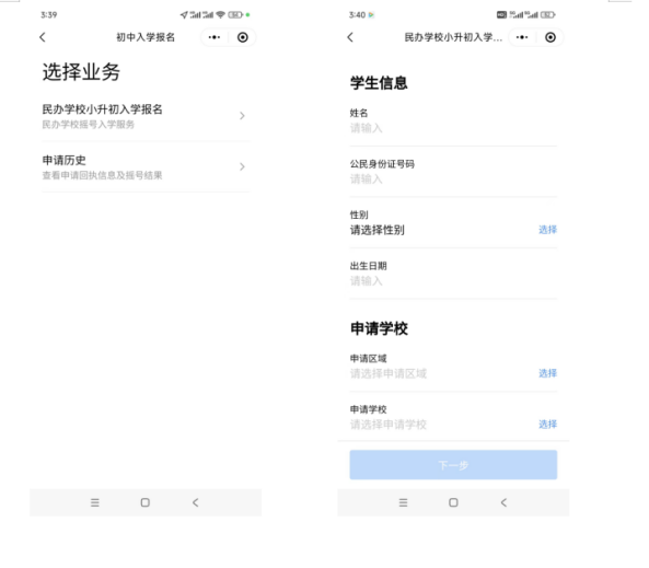 登录“粤省事”小程序→办事→教育→初中入学报名→民办学校小升初入学报名→……