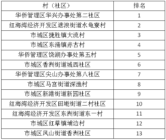 为全面开展市、县、镇街、村(社区)四级文明联创,扎实推进电影天堂 城乡环境卫生整治工作深入开展,努力打造整洁、舒适、健康的城乡环境,重塑汕尾良好形象。根据汕尾市全面开展文明创建工作领导小组《关于印发〈关于在文明创建工作中对各级各单位开展测评排名和媒体曝光的实施方案〉的通知》(汕创文〔2016〕2号)和《关于印发〈汕尾市全面开展文明创建工作激励方案〉的通知》(汕创文办〔2017〕21号),市创文办于2017年7月19日至20日对海丰县小漠镇等62个镇街(场)和华侨管理区华兴办事处第二社区等62个村(社区)开展城乡环境卫生整治工作情况进行了第十六次测评排名。现将结果通报如下。