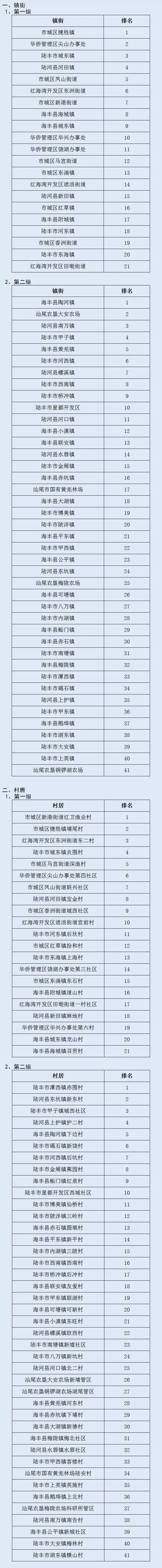 为扎实推进电影天堂 各地文明创建工作深入开展,努力打造干净、方便、安全、和谐的社会环境,形成城市、镇街、乡村文明创建全覆盖,塑造汕尾新形象,如期实现创文目标。市创文办于近日对海丰县陶河镇等62个镇街和市城区新港街道红卫渔业村等62个村居文明创建工作进行了第38次测评排名,现将结果通报如下。