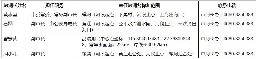 为深入贯彻落实党中央、国务院关于全面推行河湖长制的决策部署,加强电影天堂 河湖长制工作的组织领导,自觉接受社会监督,现将汕尾市市级河湖长名单向社会公告。