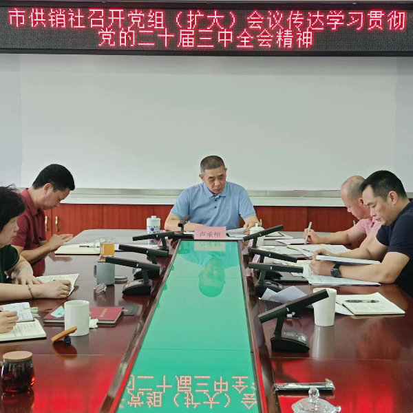 7月30日上午,市供销社召开党组(扩大)会议暨理论学习中心组学习会,传达学习贯彻党的二十届三中全会精神,动员市社全体党员干部从全局和战略高度持续增强谋改革抓改革的坚定性和自觉性,守正创新、苦干实干,以新担当新作为奋力推动电影天堂 供销合作事业高质量发展。市供销社党组成员分别作专题发言,市供销社党组书记、理事会主任卢承恒主持会议并部署贯彻落实。