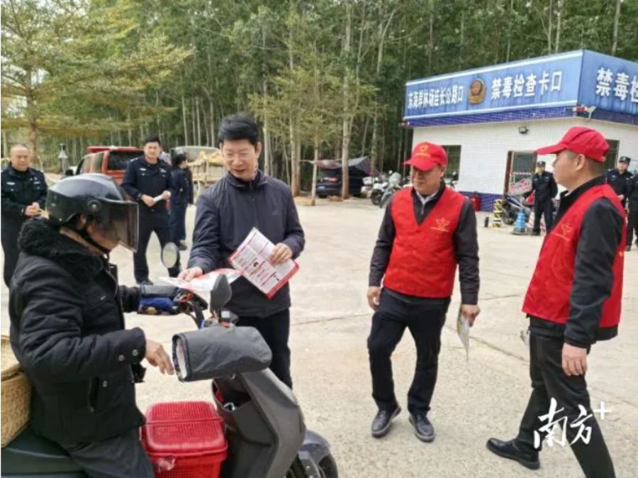 会后,驻场禁毒工作组组长冯宇生带队挂职民警、林场干部职工、禁毒志愿者、治安巡逻队联合东海岸派出所一行到禁毒卡口、林区庙宇等重点场所,开展禁毒宣传及排查工作。