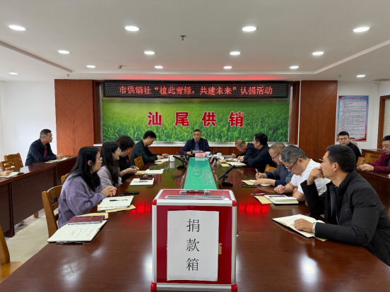 认捐现场,市供销社党组书记、理事会主任卢承恒同志带头捐款,全体干部职工积极响应,纷纷参与认捐,合计捐款2500元,用于支持市供销社结对共建的陆丰市八万镇八万村乡村绿化工作,以实际行动发挥干部示范带头作用。卢承恒主任强调,市供销社党支部和党员干部要充分发挥基层党组织战斗堡垒作用和党员先锋模范作用,深化党建联建共建,加强对八万村绿美工作的深入指导,抓好资源统筹安排。要广泛利用植树节、清明节等重要时间节点开展植树活动、“入户联心”“双报到双服务”等活动,积极宣传乡村绿化的重要意义,示范带动群众参与乡村绿化,共绘乡村绿化“善美画卷”,为汕尾生态文明发展贡献供销力量。