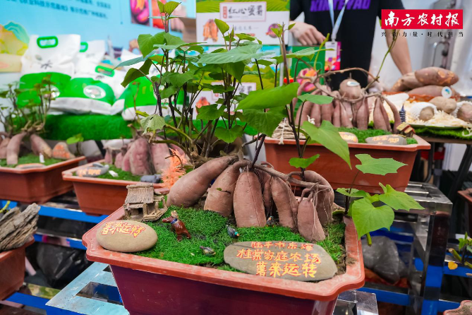2024年深圳食博会上,汕尾展区造型独特的甘薯盆栽备受关注。