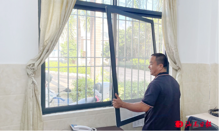 水唇镇联户人员帮群众修理纱窗。