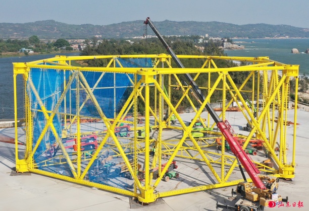 汕尾日报讯(记者 陈思明 通讯员 史智辉 刘鹏 文/图)近日,由中交广航局交建公司承建的省港航集团海洋牧场(汕尾)项目,首座桁架式网箱六大面模块及底部桁架拼装工作顺利完成,正式进入二层平台结构、桩腿等附属设施施工新阶段。