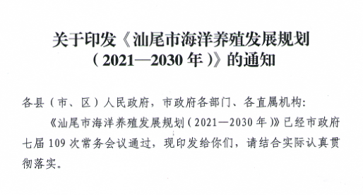 关于印发《汕尾市海洋养殖发展规划(2021-2030年)》的通知